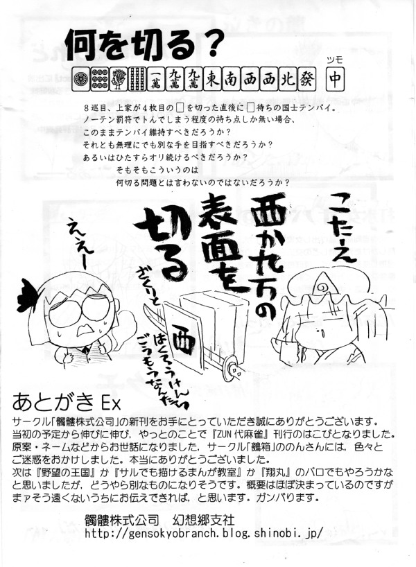 あと,ZUN代麻雀を再版いたします。書店委託はたぶんしないと思います。